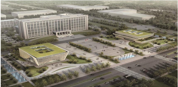 其中A、B楼包括办公和会议功能,地上11层,地下二层,建筑高度为49.9米;A楼地上建筑面积为54382平方米,B楼地上建筑面积为13160平方米,地下建筑面积为34029平方米;C楼为后勤服务中心、行政服务中心,地上5层,地下1层,地上为17583.8平方米,地下为10114.4平方米,建筑高度为23.4米;D楼为档案馆和信访功能,地上5层,面积19115.3平方米,建筑高度23.4米。